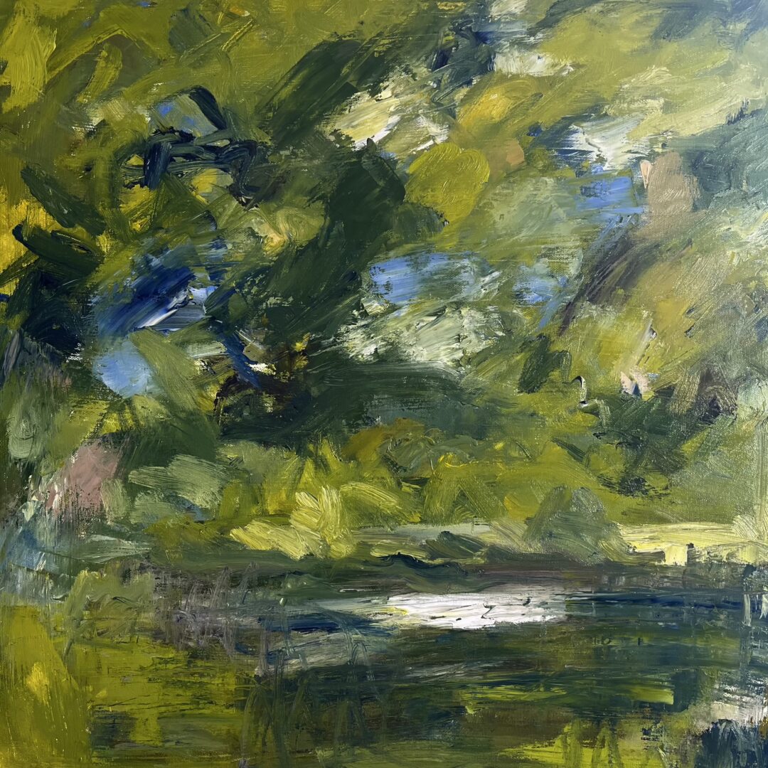 This is the latest of my River paintings from sketches on the same spot. 60 x 60 oil on canvas. I notice they are getting looser which I hope is progress. My aim has been to get depth by juxtaposing complementary colours and also to get values right
