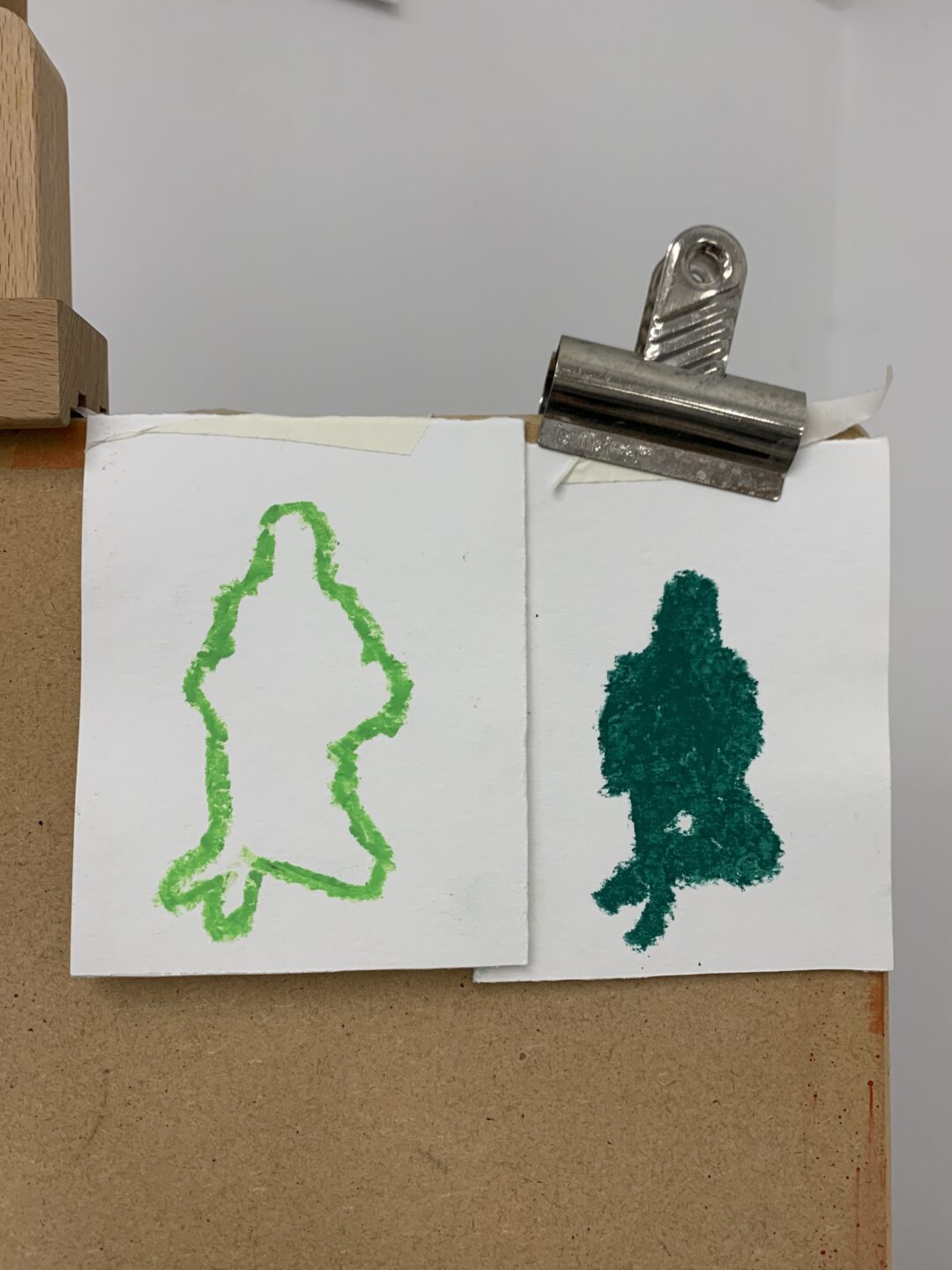 Unfortunately I’m having to work from a photograph rather than life nevertheless here are my first two miniature studies in oil pastel – a worthwhile exercise.